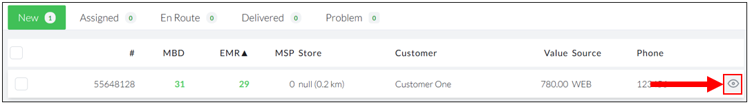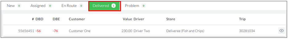 Selecting any of these tabs will show the orders in each of their delivery State.