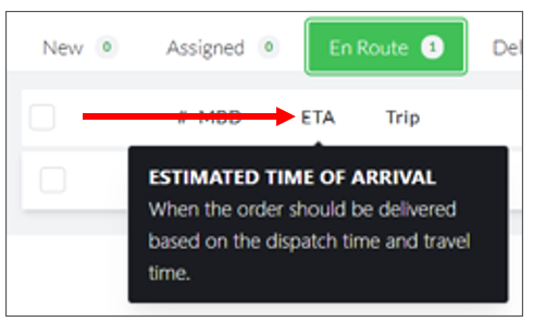 Here you will notice the abbreviation ETA (Estimated time of arrival).