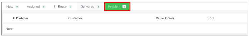 "Problem"= Any orders that have not been delivered – such as being unable to locate a customer, or a hoax order will appear in the Problems tab.