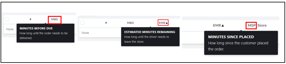 2. EMR- The time the driver has left at the store before he must leave, taking travel time into consideration, to deliver on time.
